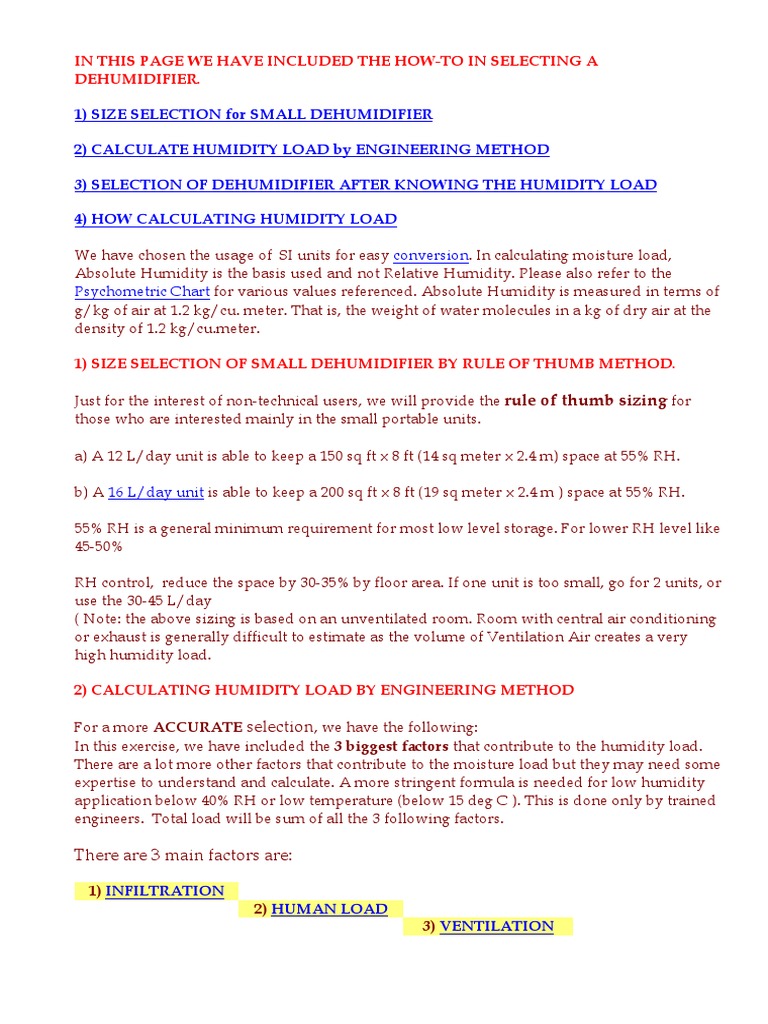 STEP 1 Involves an old high school geometry formula for volume. Web Method for calculating de-humidification capacity All the normal humidity measuring instruments will indicate the humidity levels in RH. 015 kgh Light work.